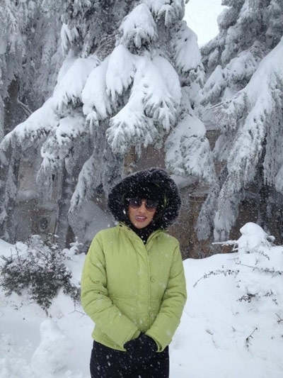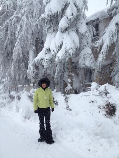 غرّدت الفنانة اللبنانية نجوى كرم فرحاً على تويتر، فنشرت صوراً لها وهي على بساطٍ من الثلج الأبيض في مدينتها البقاعية زحلة.