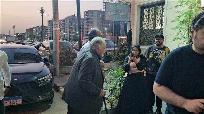 بالصور - يحيى الفخراني في ظهور نادر يتكئ على عصا ويمشي بصعوبة