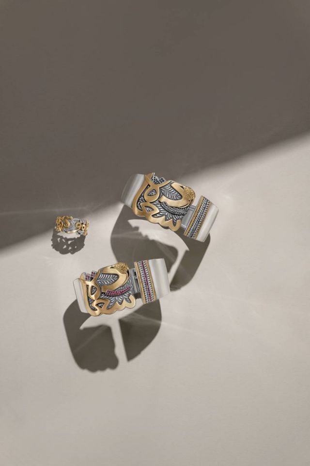 من خلال تفاصيل مجموعة "النور" الساحرة يمكننا رؤية حِرفية عزة فهمي الاستثنائية التي تظهر بوضوح في الزخارف والنقوش اليدوية الدقيقة. والتي تضمّ إلى حُلي عزة فهمي قطعاً جديدة من الذهب عيار 18قيراطاً والفضة الإسترليني المزيّنة بالأحجار الكريمة المتنوعة لتُبرز جمال الخط العربي.