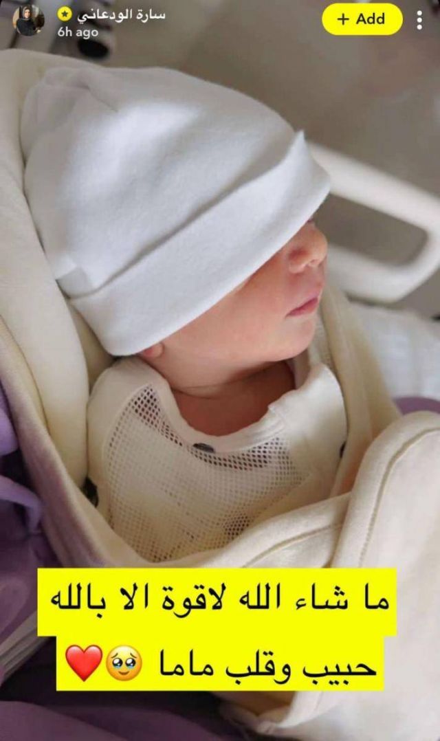 نشرت خبيرة التجميل السعودية سارة الودعاني الصورة الأولى لمولودها الثالث سليمان من زوجها رجل الأعمال عبد الوهاب الدخيل، من داخل جناح ملكي في أحد المستشفيات.