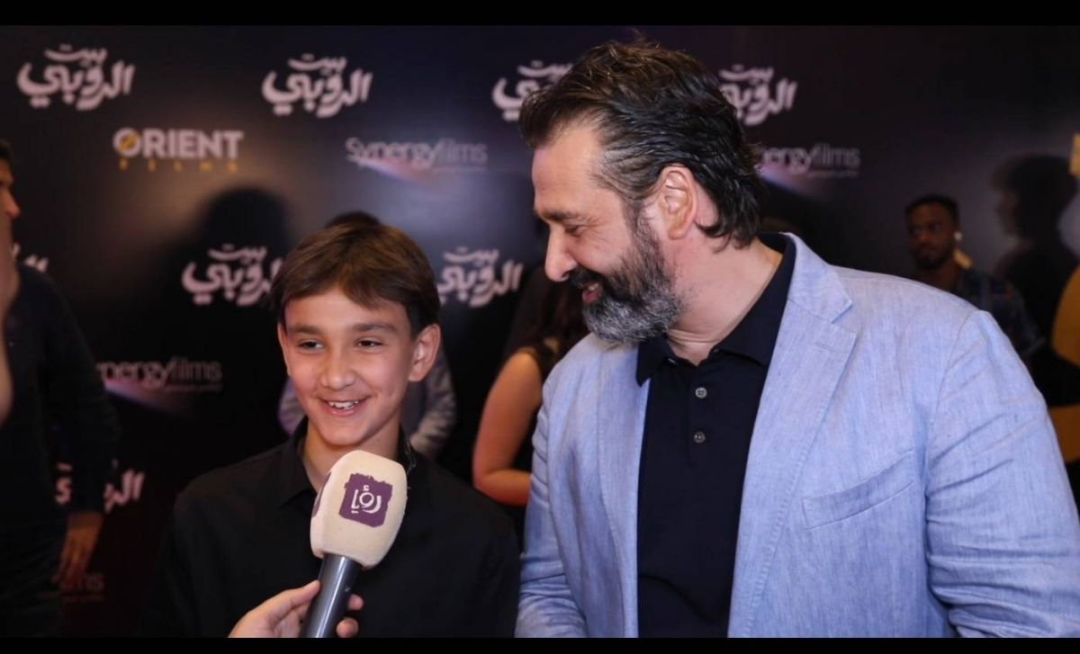 وكشف نجل كريم عن رغبته في الاتجاه الى التمثيل قائلاً: "مبسوط إن فيلم "بيت الروبي" نزل وإن شاء الله هيبقى حلو وجميل وبإذن الله"، وأضاف: "همثّل أكيد"، ليداعبه والده قائلاً: "يارب يبقى بيعرف بس الأول".