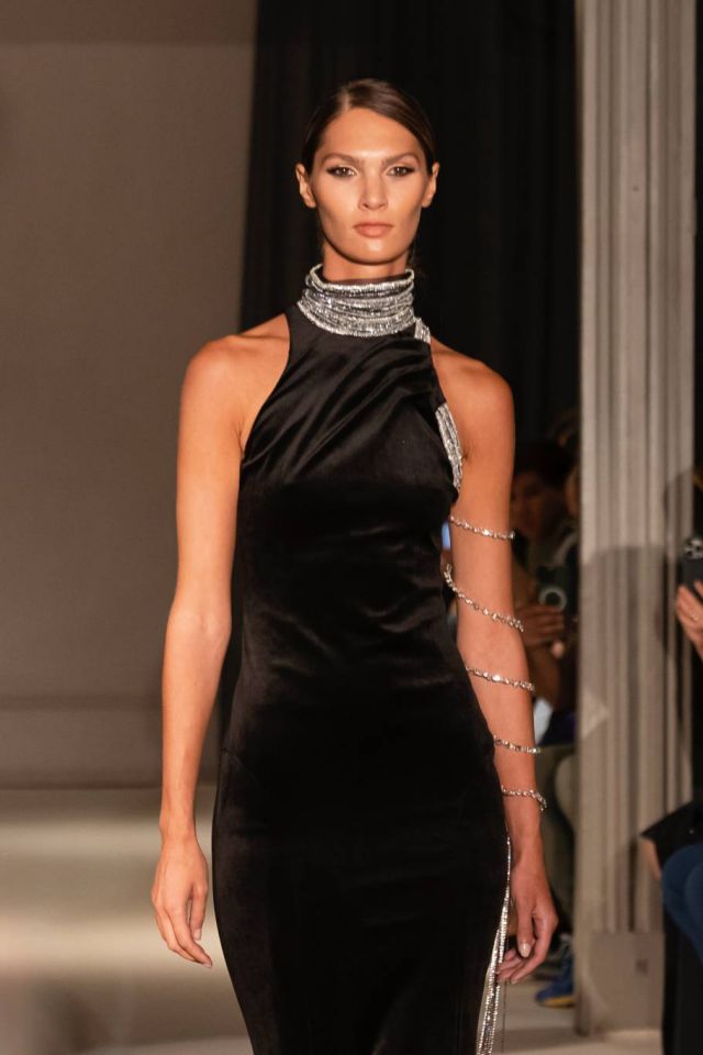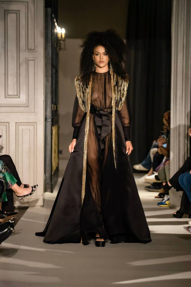 والظلال هنا، التي تبرز في تصميم الفساتين وتنفيذها، تمثل تجسيداً واقعياً لعناصر القوة المكتسبة من الغموض، وتظهر في قصّات متنوعة في فساتين طويلة وقصيرة، وتصاميم أخرى مثل الـ"Overall" والـ"Body" تثبت حضور المرأة في مختلف المناسبات. فالـshadow يفصل بين العتمة والضوء، ويشكل مساحة توازن بينهما، وهو ما تستطيع المرأة القوية أن تخلقه بين الـDark side الذي يعبّر عن قوتها وذكائها وقدرتها على عدم الاستسلام، وبين الجانب المشرق الذي يظهر حنانها وأمومتها وأنوثتها.
