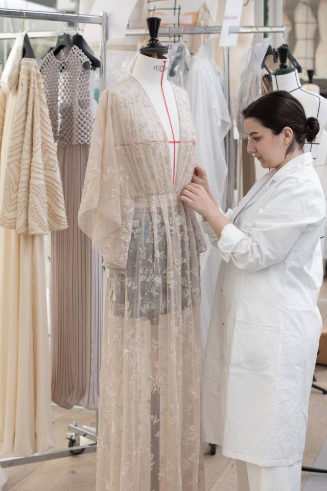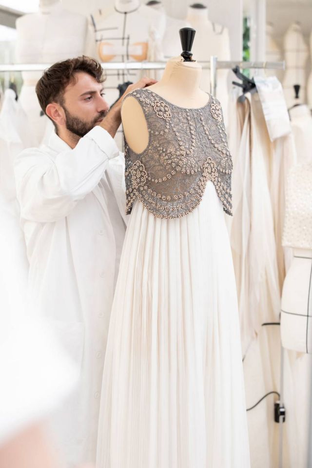 التفاصيل سرّ التميّز في الهوت كوتور. الجماليات كلّها في مجموعة ديور للأزياء الراقية لخريف وشتاء ٢٠٢٣-٢٠٢٤ تكمن في الحِرفيات الأدقّ. عالم من الأيدي المبدعة يعنى بأدقّ التفاصيل، ويعمل على الاستغناء عن الأنماط الورقيّة وتحويل التصميم التخطيطيّ إلى فستان يعكس جوهر الرسم الأصلي بوفاء ويحتضن تفرّد الجسم. تعمل مصمّمة دار "ديور"، ماريا غراتسيا كيوري على صقل عناصر الملابس بأسلوب دقيق ومُتقن لتكون نموذجيّة وتتبنى التعبير الشاعري المُتمثّل في دمج التصاميم الراقية للفستان مع الجسد. تتألّق حبيبات اللآلئ التي ترمز إلى النقاوة، على العديد من التطريزات. وعند تشابكها مع الخيوط الفضية، تلمع بألوان مُتقزّحة. كما تعيد الإطلالات إحياء الأقمشة المتلألئة التي تُذكّرنا بفترة الستينيّات، مُزيّنةً الفساتين والتنانير الطويلة. الجماليات كلّها التي تضمّنتها قطع المجموعة في هذا التحقيق المصوّر الذي يعرّفنا على العمل الحِرفي وراء كلّ قطعة راقية تخطف الأنظار.