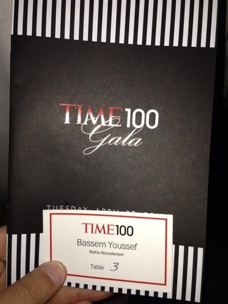 سافر الدكتور باسم يوسف إلى أمريكا لحضور حفلة مجلة التايم التي أدرجت اسمه ضمن أكثر 100 شخصيّة تأثيرا في العالم لعام 2013.
