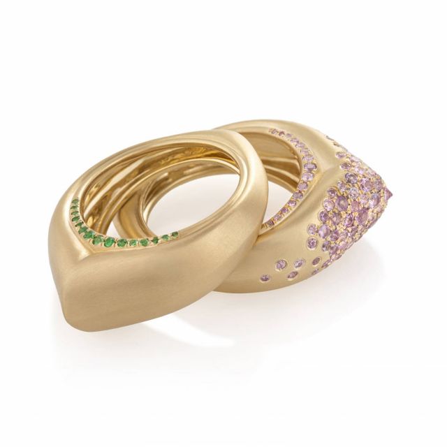 تم تصميم كل قطعة من الذهب المصقول عيار 18 قيراطاً وأحجار مرصوفة بتوقيع المصمّمة المميز، وترمز كل من الأحجار والزخارف الى نعمة، هي بمثابة تذكير بقدرتنا الفطرية على صياغة الفرص وتشكيل مسار حياتنا.
