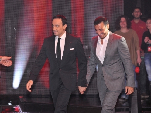 - دخل كاظم ممسكاً يد صابر فهتف لهما الجمهور وصفّق كثيراً، ثم توّجه إلى عاصي وألقى عليه السلام.