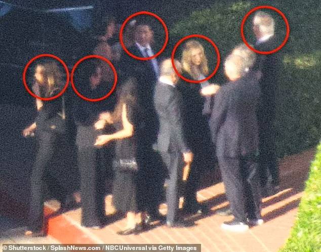 Dressed in black suits, Jennifer Aniston, Lisa Kudrow, Courteney Cox, and David Schwimmer arrived as a quartet to farewell their friend.… pic.twitter.com/JpsM1GJm9N