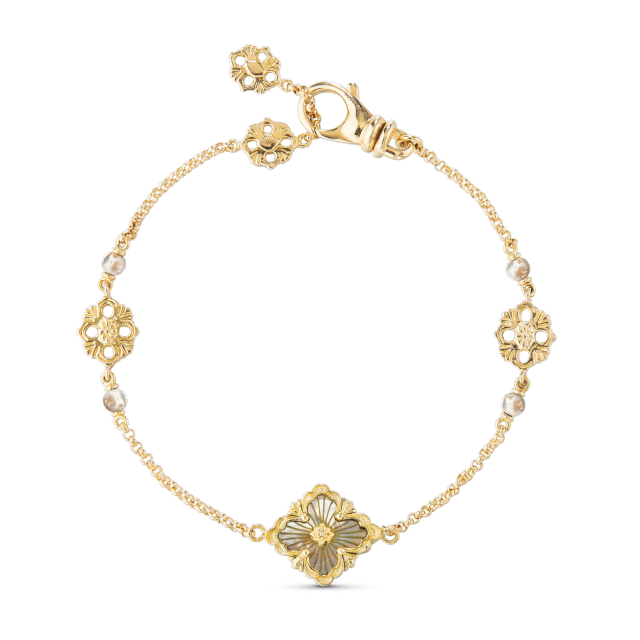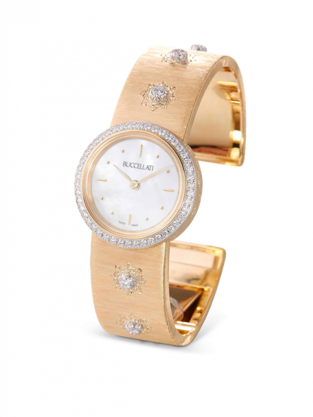 تماماً مثل إبداعات مجموعة Opera Tulle Premium التي تعكس وتؤكد سمات "بوتشيلاتي" Buccellati الأسلوبية المميزة: الشكل الوردي، وصياغة الذهب المشغول بدقة التول، والنقوش والألماس.