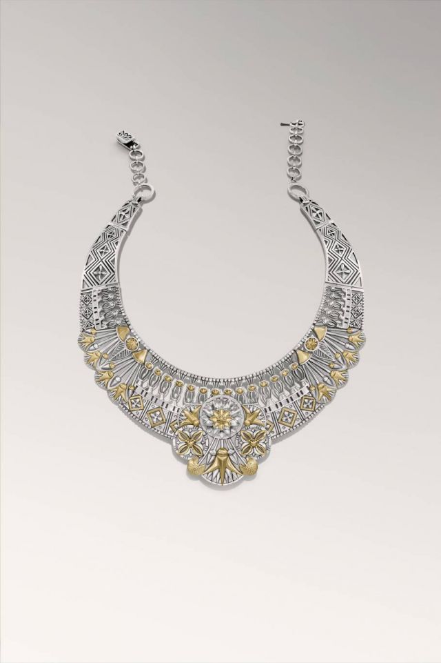 لطالما وجدت عزة فهمي الإلهام في تصميمات جدران المعابد والمقابر، التي تتزيّن بزهرة اللوتس بأشكال مختلفة، الزهرة التي حملت معاني كثيرة على مدى آلاف السنين. واليوم تُطلق عزة فهمي هذه المجموعة لتذكّرنا بما تمثله زهرة اللوتس من معاني الخلق والتجديد.