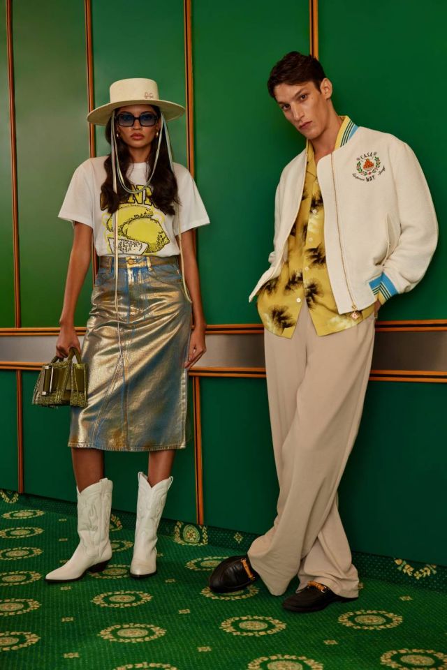 أما بالنسبة الى الرجال، فتتألق المجموعة بقميصٍ بأكمامٍ طويلة من علامة Casablanca، وسروال ذي قصة واسعة من Commas وعقد باندانا مميز من Mikia.
