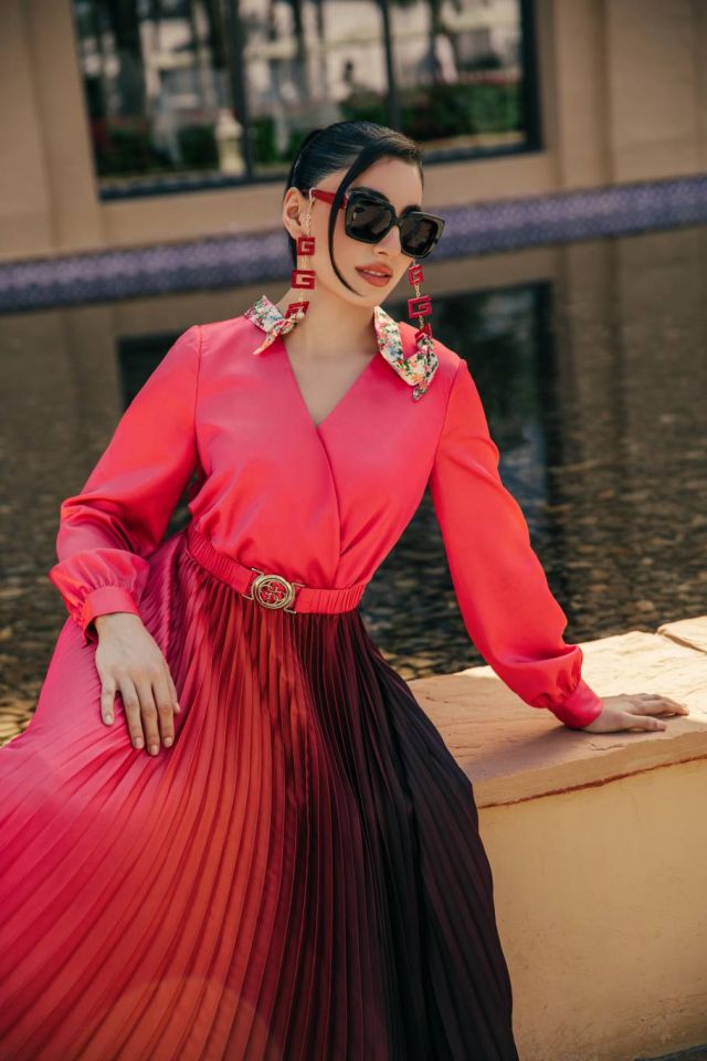 ضمن هذه التشكيلة المحدودة تتزيّن الفساتين ذات الثنيات المموجة بتفاصيل أومبريه مميزة، في حين تستحضر طبعات الأزهار الرومانسية ذكريات عزيزة ولحظات دافئة. كما تعكس لمسات الميتاليك اللامعة بهجة الموسم، بينما تتألق طبعة لوغو 4G الأيقوني من Guess، على شكل زهرة الفاوانيا، بألوان الفوشيا والوردي والدراقيّ لتعبّرعن الأمل والتآلف وروح الموسم الاحتفالية.