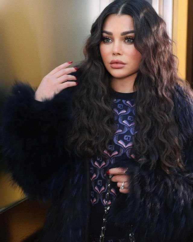 وتألقت الفنانة اللبنانية ببدلة Sweaters مزين بطبعات من العلامة التجارية العالمية وهي عبارة توب قصيرة، يصل سعرها نحو 1106 دولار، ونسقته على بنطال بتصميم ناعم من نفس الطباعة يصل سعره إلى 713 دولار. ونشقت مع ملابسها جاكيت متوسطة الطول من الفرو الفخم.