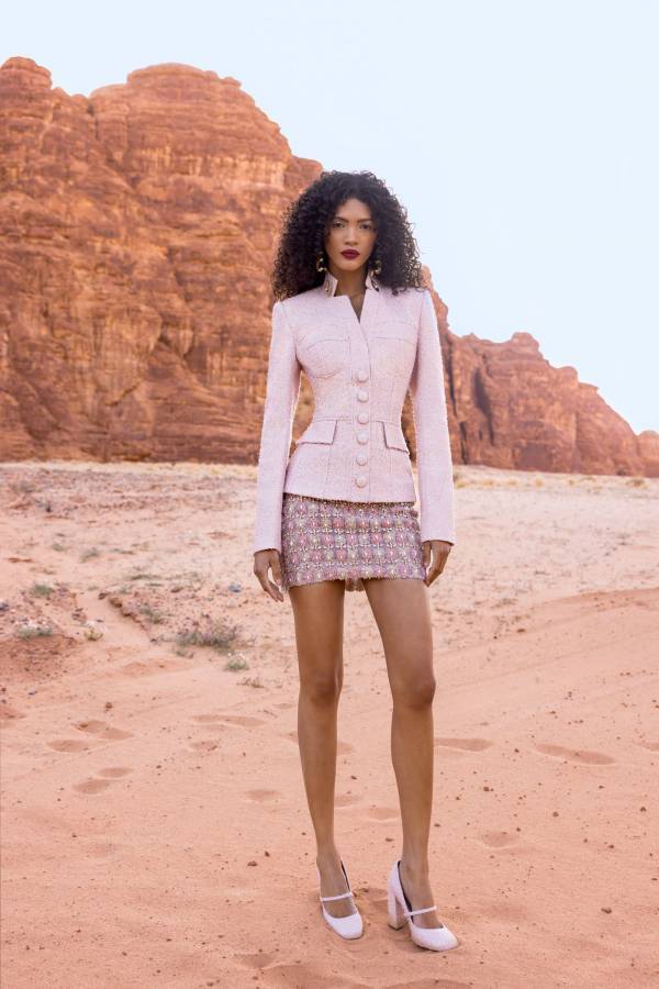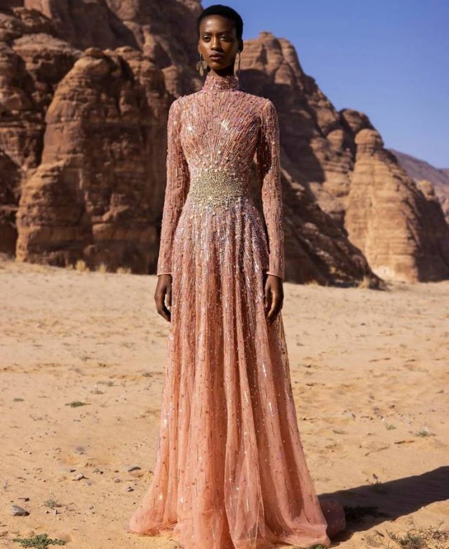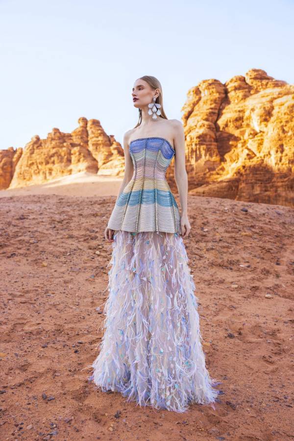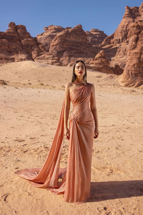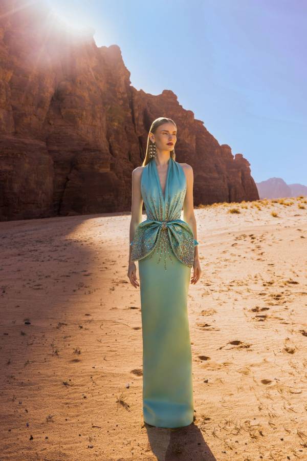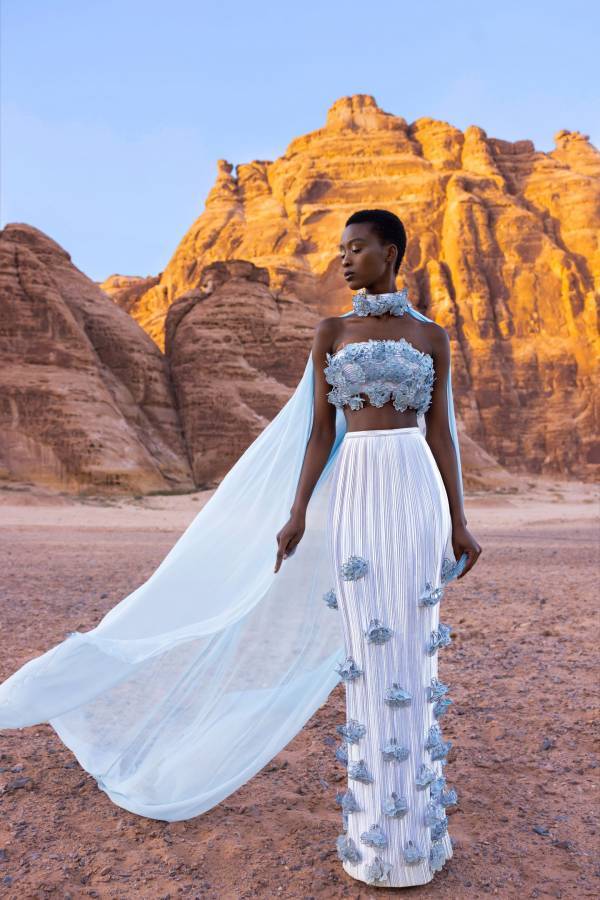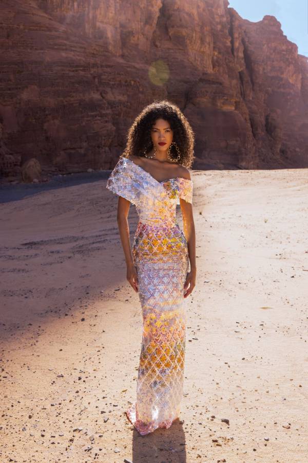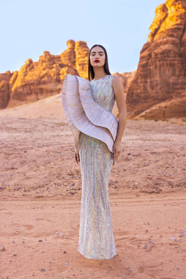 واختار المصمّم رامي قاضي وادي العلا بمناظره الطبيعية الصحراوية الساحرة، مسرحاً لإطلاق حملته التسويقية المتألقة لمجموعة Les Miroirs، ويعكس هذا الاختيار تقديره العميق للعلا كمحور تاريخي لالتقاء الثقافات عبر الزمن. وقد أُثري العرض مع قاعة مرايا في الخلفية، مضيفاً بُعداً سينمائياً ورمزية غنية الى الحملة.