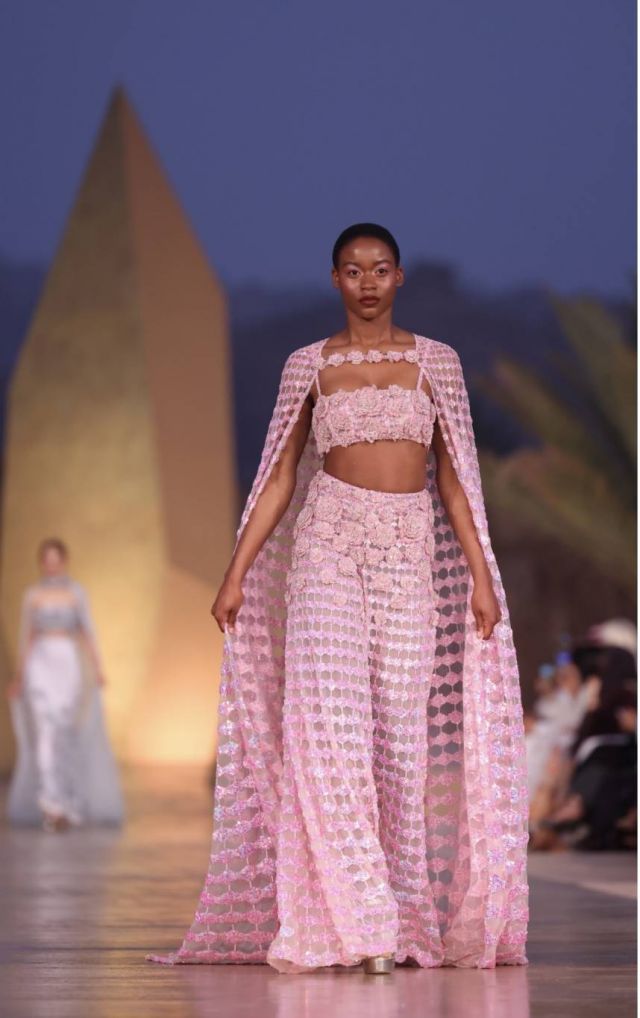 تميّز العرض بتقديم 40 قطعة استثنائية، شملت 10 تصاميم حصرية أُعدّت خصيصاً لهذه المناسبة. استوحى المصمم اللبناني تصاميم المجموعة من المناظر الطبيعية الفاتنة والمعالم المعمارية للعلا، مع التركيز على الابتكار في استخدام المواد مثل العناصر الهولوغرافية، البلاستيك المُعاد تدويره، وقطع الزجاج المكسور.