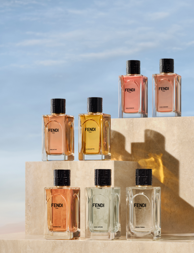 FENDI روما المدينة التي توقظ الحواس كلّها، حيث تتنشق رائحة أحجارها ورخامها، كيف تتبدّل خلال النهار، بينما تزفر الشمس عبير المعادن التي فيها. وفيها تتنشق أريج أشجار الصنوبر الثمرية، ونضارة الحدائق بأشجار الغار والورد واللنتانة. وتشمّ رائحة الجلد القوية المنبعثة من مشاغل الحرفيين. روما هي مدينة تكثر فيها الروائح والعطور، ودار FENDI هي جوهر مدينة روما. مهد الحضارة الغربية، مدينة الفن والثقافة، الدولتشي فيتا التي وصفها فيديريكو فيليني، الرفاهية الطبيعية المطعّمة بالأناقة وروح الدعابة، والمزيج المتناقض من الوفرة والبساطة. FENDI تمتلك روح روما قبل أن تكون إيطالية الهوية. تجسّد الدار قيم المدينة، وتحتضن تاريخها وتحاكي روحها.