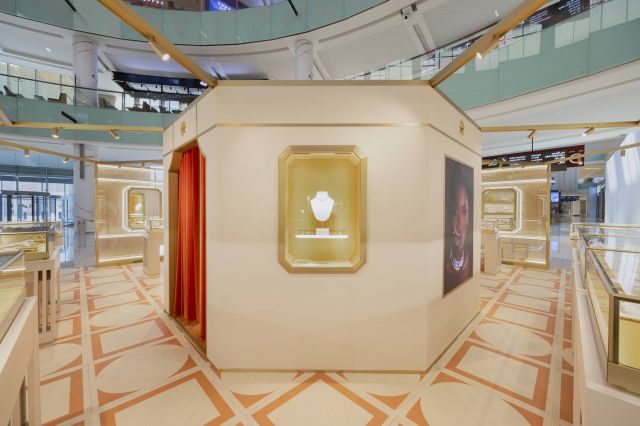 واختارت الدار العريقة الأجواء الأنيقة والألوان الصيفية المميّزة التي طغى عليها اللون الذهبي، وقد تم تصميم المكان بطريقة مبتكَرة لعرض مجموعتها المميّزة من الحقائب والساعات والعطور والمجوهرات الراقية.