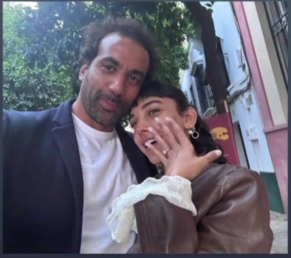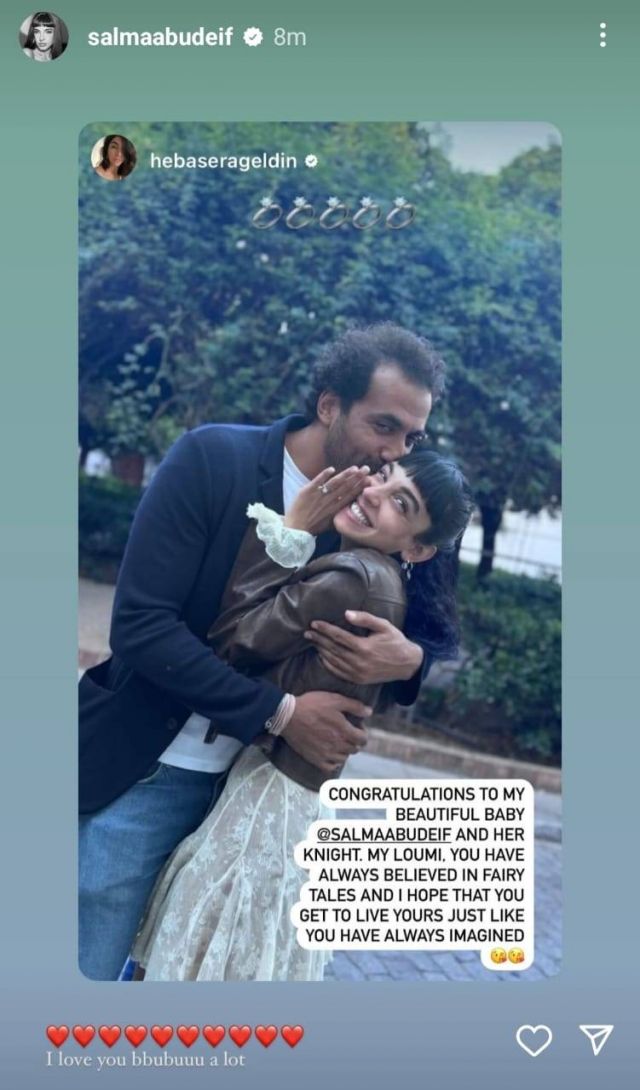 وظهرت سلمى في الصور وهي تحتضن خطيبها وتستعرض خاتم الخطوبة في إصبعها.