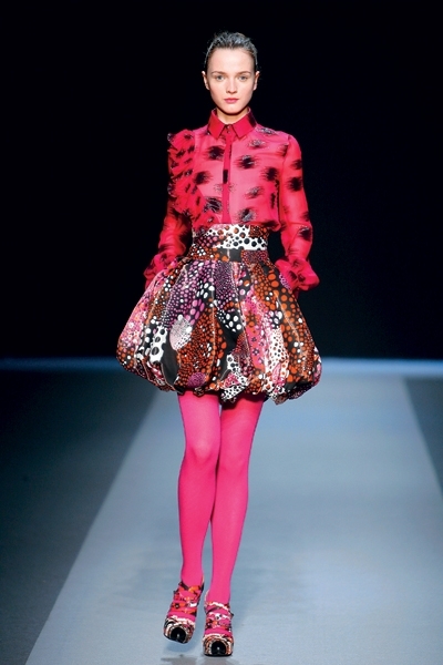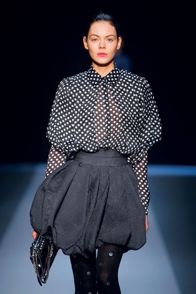 بنّت دار أنغارو هذا الموسم هواية أنثوية هي الباليه، فإرتدت العارضات زي الباليرينا المعتمد على التنّورة المتفتّحة كزهرة ال«توليب» والجوارب غير الشفافة. وقد إبتكرت الدار بإبداع تصاميم بألوان مضيئة وداكنة شكّلت تناغماً مجنوناً مع الجوارب المرقطة والبسيطة، كما إكتمل مشهد مسرح الباليه الروسي مع الحذاء المزوّد بشريطة متعدّدة الأدوار تحاكي إشراقة الساتين. وذلك إلى جانب التنورة الصغيرة والضيقة التي كانت ضيفة شرف في هذا الموسم، موضة غير مهجورة وثابتة بقوة.
