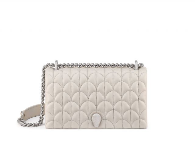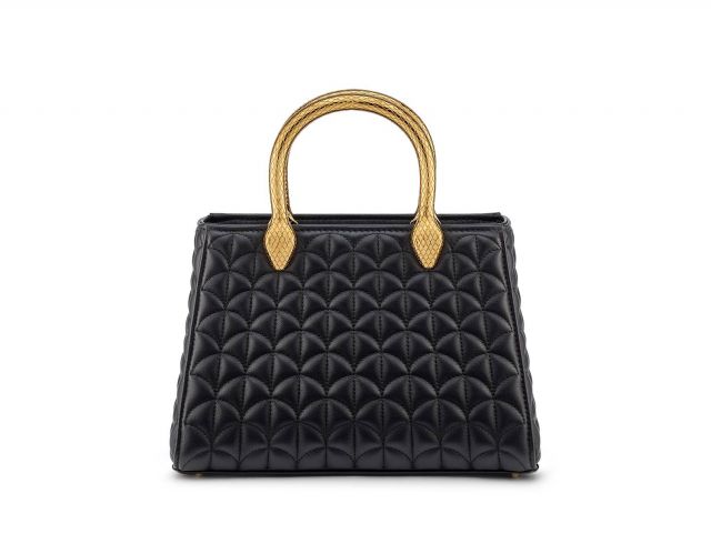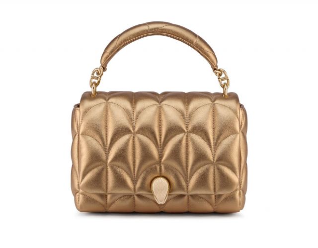 وتبرز ضمن التشكيلة الجديدة حقيبة "سيربنتي دو" المميزة بحجمها الكبير وقَصّتها المبتكَرة على شكل شبه منحرف، بما يحاكي الوجوه المختلفة للأحجار الكريمة. وتتألق الحقيبة الفاخرة بمقبض معدني يتزيّن برأسَي أفعى على كل جانب يجسّدان إرث العلامة العريق. كما تعكس قَصّة الحقيبة المتعرّجة وسطحها المنقوش بدقة، البراعة العالية التي تتمتع بها "بولغري" في تسخير أساليبها الخاصة بصناعة المجوهرات وترجمتها إلى أجمل المنتجات الجلدية، لتضاهي بذلك فخامة أرقى المجوهرات وتعيد إحياء رمز الأفعى برأسين الشهير. وتتوافر الحقيبة بإصدارٍ عملي يلائم الإطلالات اليومية، وإصدارٍ مرصّع يدوياً بأحجار الكريستال ليناسب أفخر الأمسيات.
