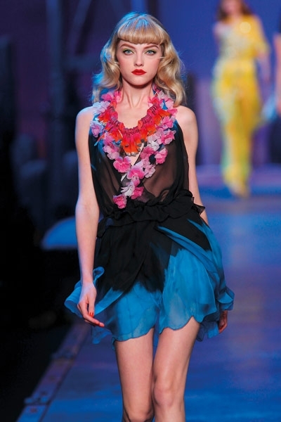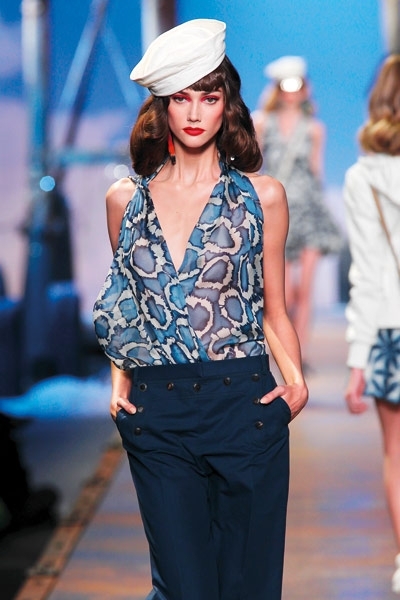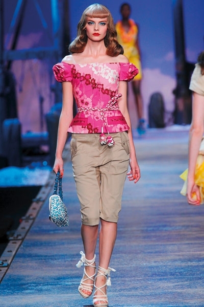 هل تذكرين أغنية "بوباي ملك البحار"؟ فهي منسجمة للغاية مع عرض ديور لموسم ربيع وصيف 2011. علاوة على قبعة بوباي، حضرت نجمة البحر بأكثر من ترصيع وتطبيع. فيما رفلت على المنصة جميلات الشاطئ بتناقض طبيعة هاواي المنسحبة على لقاء الفستان القطني أو الموسلين المنقوش بالزهور وريش الببغاوات، بحقيبة Lady Dior الفاخرة. كما استعاد غاليانو ألق حياكة "التريكو" وال"كروشيه" التي عكست أجواء العناوين السابقة.