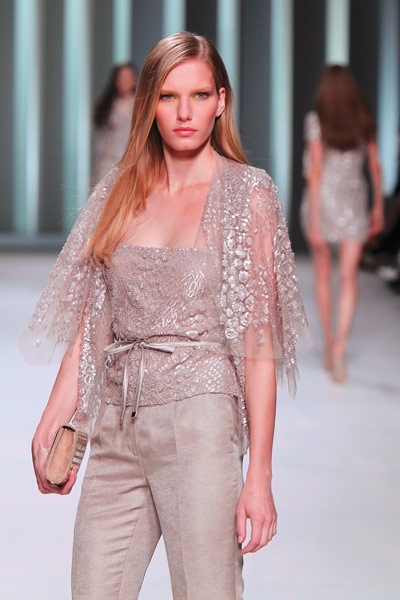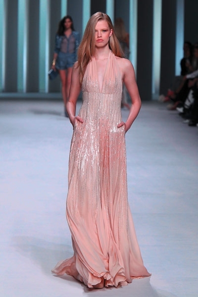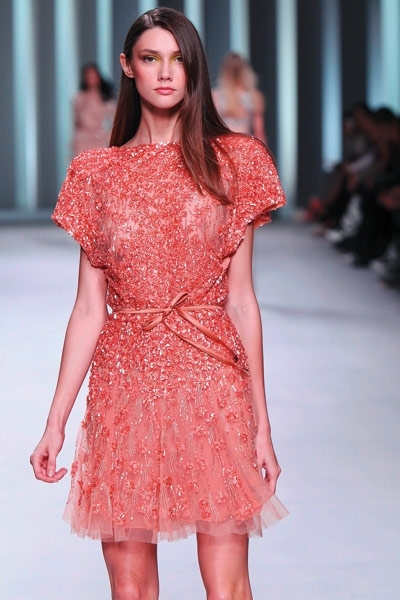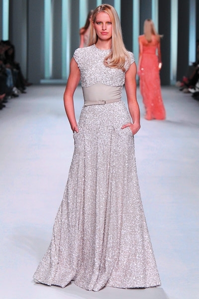 تنويع في تدرج الألوان، الزيتي والأزرق البارودي والأبيض القشدي، لم يكنْ على حساب تدرج البرتقالي الملك هذا الموسم، المرجاني. كما تنوّعت تفاصيل الكلاسيكية الرومانسية عبر شريط الخصر الرفيع وملاءة الساتين ووفرة الإنسدال. أما نجمة الأضواء، فأهداها إيلي صعب عالماً من الترتر الفضي متخلياً عن الترصيع الداكن الذي اتبعه في المواسم المنصرمة. أليست الأضواء ساطعة على البساط الأحمر؟