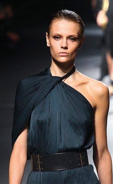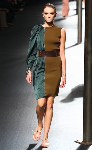 بدا ألبير إلباز، مصمّم دار لانفين متطرفاً للغاية في لعبة الأضواء، الألوان. فاختار الألوان الشاحبة، الزيتي والكاكي والرمادي والبُني، وعلى النقيض تماماً صمّم الحرير المطّاط بألوان مشعّة، الفوشيا والأصفر المضيء. وتبرز في العرض تفاصيل الأكتاف والحزام وانسدال الأقمشة المستوحاة من الأسطورة اليونانية، أفروديت. فقد تطلّع المصمّم في مجموعته إلى تجسيد المرأة المتحرّرة كالأقمشة المتطايرة. علاوة على الثنائية اللونية، حضر التناقض مجدداً عبر النسيج. فقد قابل المصمّم الإنسيابية بالترصيع المعدني وقبليّة الصنادل والأكسسوار.