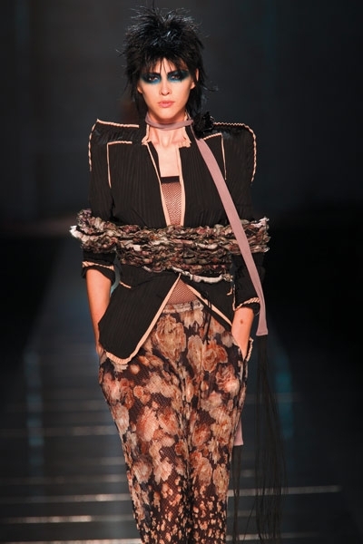 أضاف المصمم جان بول غوتييه إلى تصاميمه المزدحمة بالتفاصيل جرعة إضافية من الحدّة عبر الأكتاف المستقيمة. وقد تماهت هذه الحدّة مع مظهر المغنية الأميركية البدينة بيث ديتو ضيفة المصمّم التي اعتلت منصة العرض مع فارق عشرات الكيلوغرامات وعارضات غوتييه. وتبدو القصّات منطقية خصوصاً أن المصمّم أهدى العرض إلى "ملكات الروك" واستلهمه من فتيات المقاهي في سبعينات لندن (الدانتيل).
