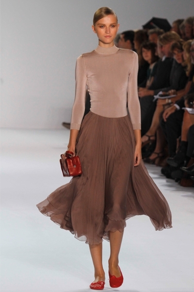 الريترو هذا الموسم مرادف للرّحب، وعودة إلى القرن الماضي وما قبله وما قبل ابتكار السروال. الحقبة المعادية للقصّات الضيقة والمفصّلة لإنحناءات الجسم. لكن بمفهوم دار شانيل صيغ هذا الإتجاه بطول معتدل لا يبلغ الأرض لكنه يتخطى الركبتين والتنورة-المظلّة Jupe Parapluie. وعودة إلى تلك المزوّدة بتنورة داخلية «جوبون»، التي باتت حكراً على عالم السهرات وفساتين الأعراس. وقد تبنّى مصمّم الدار كارل لاغرفيلد هذا الإتجاه في مجموعته العام المنصرم، لكنه هذه المرة كان محافظاً وأقل جرأة. أما دار شارون ووشوب، فاحتكمت إلى الريترو بقصة A-Line بثنيات تسترجع أيام الدراسة وكلاسيكية السبعينات الملقّحة بجرأة الجلد.