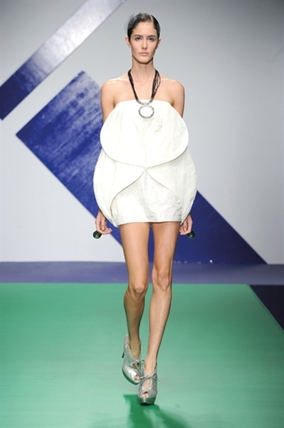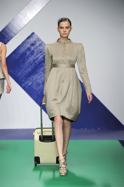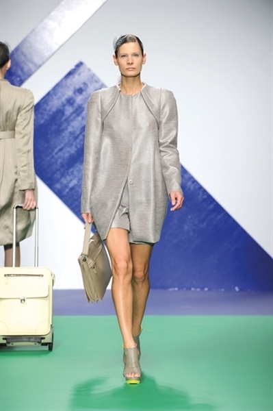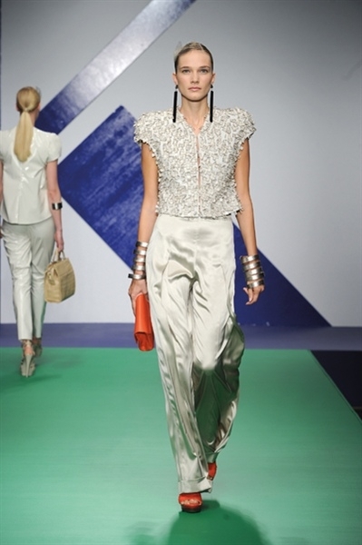 في العرض أقمشة لمّاعة باللون الأزرق واللون الأخضر.... وقد أعجبني فستان قصير فضفاض بلون البيج مع shorts تحته باللون الزهريّ الخافت، وزيّ آخر بلون البرونز اللمّاع، وshorts باللون الأبيض، قصير. وزيّ مزجت فيه الأصفر الفاقع مع الليلكيّ. وفي نهاية العرض قدّمت مجموعة من الفساتين بالأبيض والأسود. الأحذية أيضاً كانت لافتة للنظر، وكذلك الأكسسوارات مثل الأقراط الكبيرة والأساور الملفوفة على اليدين أو الذراعين.