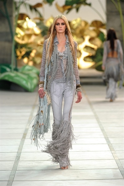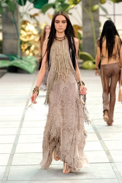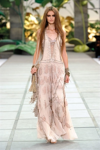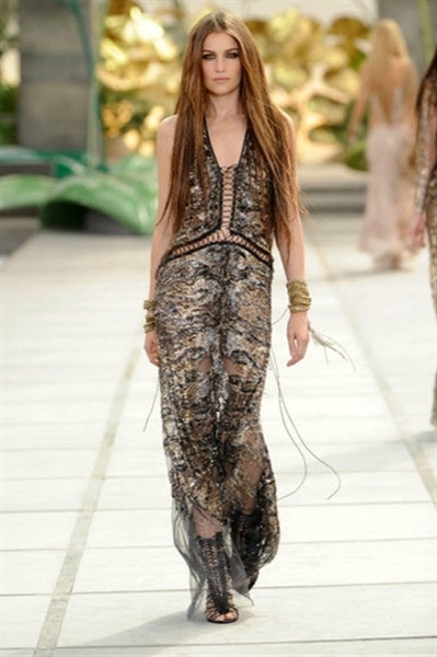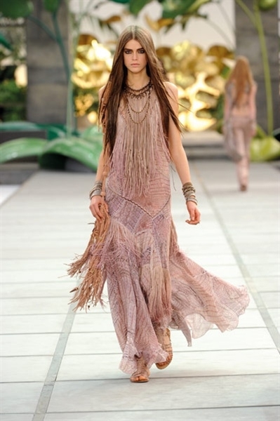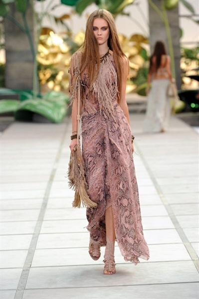 أطلّت العارضات مثل حوريّات شرسات بتصاميم من جلد التمساح والأفعى قدّمها Cavalli بطريقة جديدة، ومزج الدانتيل بالجلد، وأضاف المعدن. كما أضاف إلى تصاميمه الشكّ والخرز والكريستال. والظهر؟ تركه مكشوفاً في أغلب تصاميمه.