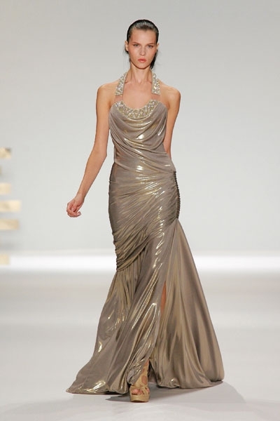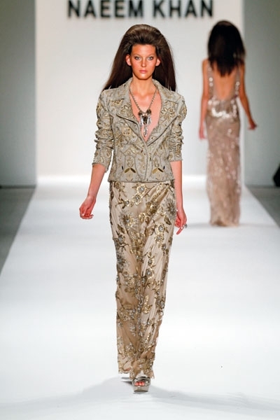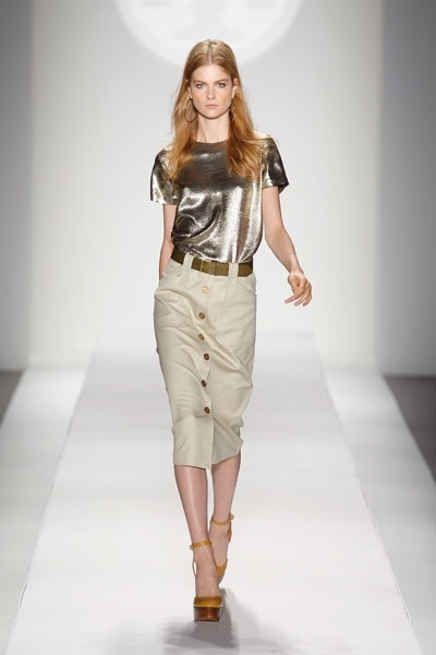 تنّورة معدنيّة كما في عرض Ralph Lauren، مع قميص بسيط كلاسيكيّ أبيض مثل عرض Nanette Lepore، للسهرات طبعاً برّاقة ولمّاعة، بألوان الذهبيّ والفضيّ مثل التي قدّمتها عروض Edition جورج شقرا وريم عكرا وJ.Mendel. ولكن باللون الأخضر أيضاً كما في عرض Krizia... رأينا أيضاً تفاصيل معدنيّة مثل الورود والنقوش المختلفة على تصاميم للنهار.