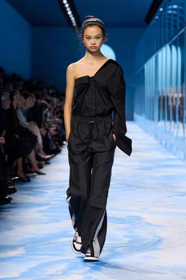 يتم تنسيق القطع البيضاء مثل القمصان مع التنانير، والسراويل، والفساتين السوداء، وهو تفاعل آسر بين الازدواجيّات، يجعلها تنضح بطابع متميّز. أمّا التفاصيل الحمراء الزاهية على السترات بأسلوب الطيارين فتُضفي لمسة تباين لتعزيز مظهر الإطلالة بشكل عام. ويُشكّل التطريز الذي يتحوّل هنا وهناك إلى فراشات أو شراريب، علامات بارزة بمظهر معدنيّ متلألئ. ويُرافق قماش الجيرسي فساتين السهرة خفيفة الوزن، والقمصان الرياضية، البسيطة أو المُعزّزة بزخارف لامعة، التي تُمثّل قطعاً يوميّة أساسيّة بكل أشكالها.