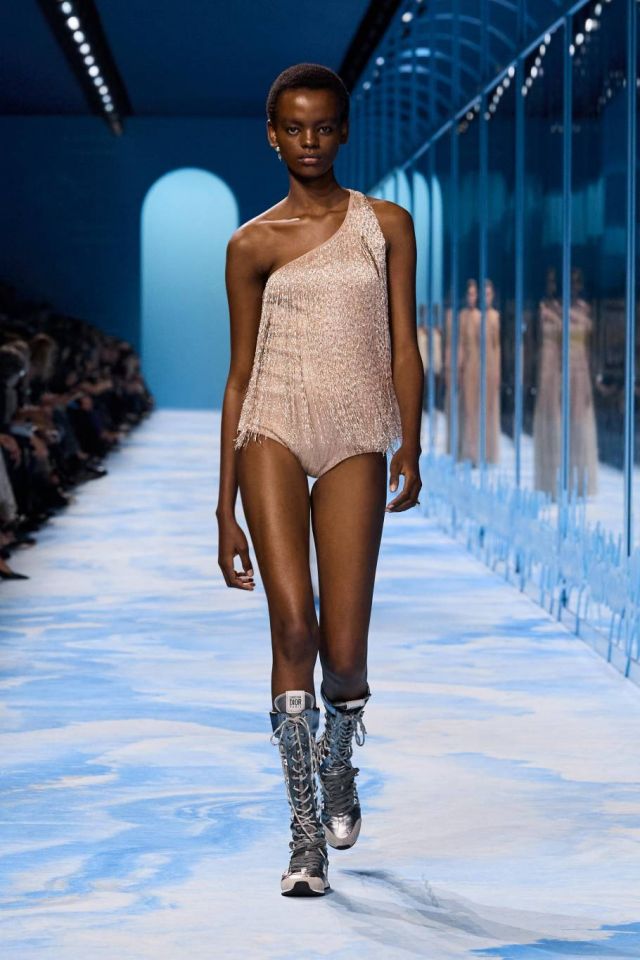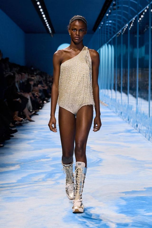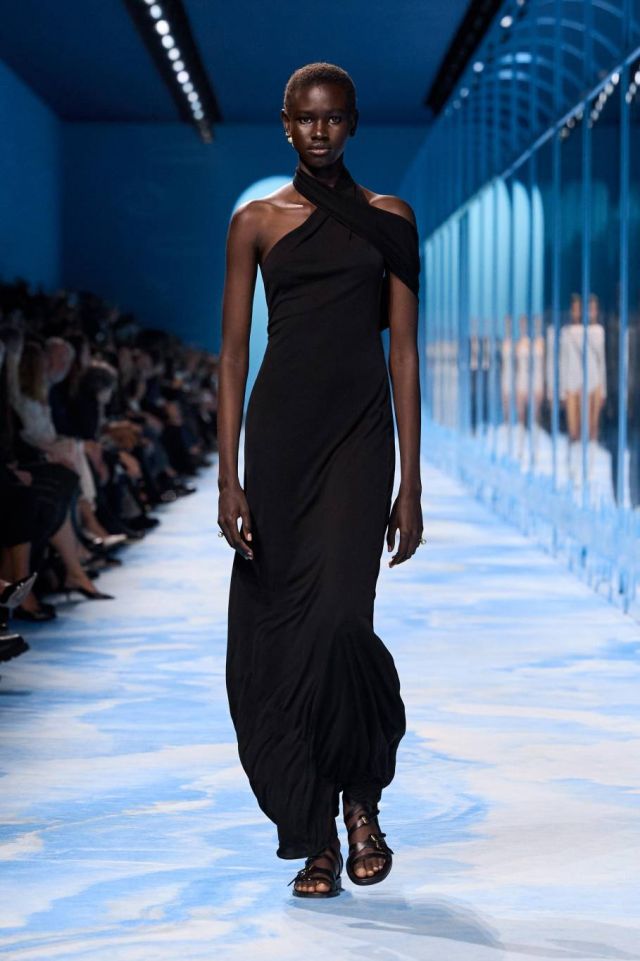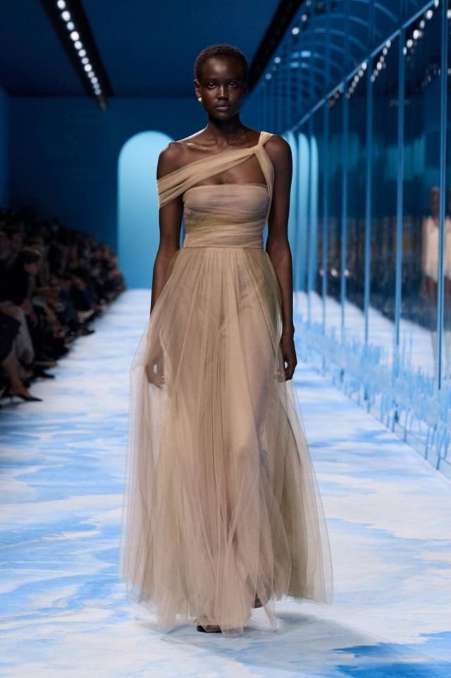 هدفت "ماريا غراتسيا كيوري" في مجموعة الألبسة الجاهزة من "ديور" Dior لربيع وصيف 2025 إلى إعادة تعريف معنى اللباس، وكأنّ كل تصميم قد أُعطيَ الفرصة ليبوح بقِصّته ويكشف عن الجهد الحِرفي الدؤوب الذي سبق تشكيله. ومن خلال تخطّي الحدود الفاصلة بين القطعة النهائيّة والعملية الإبداعيّة، تسعى المديرة الإبداعيّة للعودة إلى جذور الأزياء، مسلّطةً الضوء على العلاقة التي تربط الجسم بالملابس التي تكسوه، مع تحقيق الانسجام بين الرؤية والوظيفة. ومن هذا المنطلق، جمعت "ماريا" قصّات مختلفة من الأرشيف وأعادت ابتكارها، بدءاً بفستان "أمازون" Amazon الذي صمّمه "كريستيان ديور" لموسم خريف وشتاء 1951-1952، والذي استحضرت من خلاله تلك الشخصية الأنثويّة الأسطوريّة، المعروفة بقوّة روحها، ليكون بذلك نقطة مرجعيّة لمفهوم الأنوثة المستقلّة والشجاعة.
