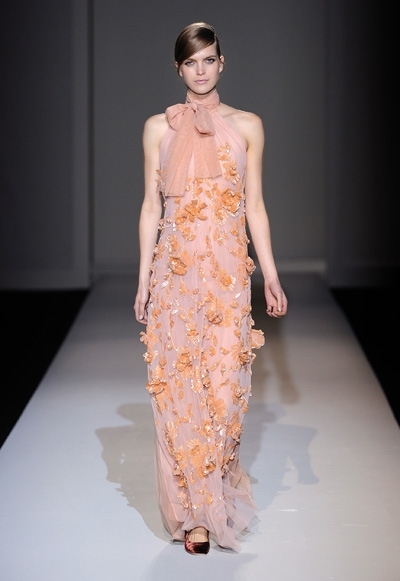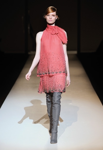 المصمّة Alberta Ferretti لا تنظر إلى فترة سابقة عند تقديم مجموعتها... قد يكون هناك بعض الذكريات من الماضيّ، ولكنّها تفكّر في المستقبل. تريد المرأة عصريّة، ولكنّها تريدها أن تستعيد أناقتها وتبرز شخصّيتها دون تردّد. المجموعة ضمّت الفساتين القصيرة الملوّنة بقصّات مرتاحة مع جزمات عالية، أو قمصان طويلة مع سراويل ضيّقة Leggings. كما قدّمت Overalls بأقمشة مطبوعة ومعطف بلون الأخضر اللمّاع. السهرة كما تقول Ferretti وقت خاصّ ومميّز، تريده مطبوعاً بالأنوثة والحسيّة! فقدّمت فساتين رومانسيّة رائعة باللون الرماديّ برّاقة مع دانتيل، وفستاناً باللون الأزرق الفاتح لمّاعاً أيضاً، وفساتين فضفاضة مع دانتيل وبرق.