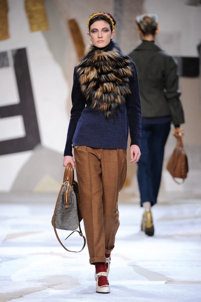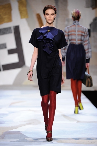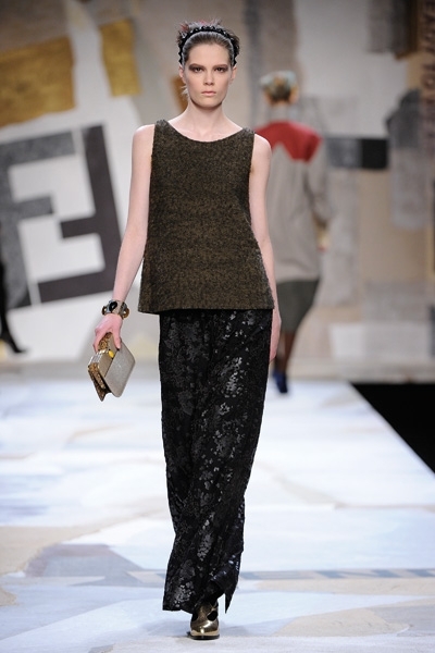 كارل لاغرفيلد و Silvia Venturini Fendi معاً لا يمكنهما إلا تقديم مجموعة بكامل الأناقة، كلاسيكيّة لا تخلو من الفرو والجلد اللمّاع والكشاكش على القمصان من العنق إلى الصدر... الأكمام مزمومة وقصيرة أيضاً مع كشاكش، بألوان دافئة مثل البنيّ والخردل والأخضر والأحمر الداكن، وجوارب داكنة ملوّنة. كما لفتت نظري مجموعة المعاطف من Fendi بألوان الزيتيّ والرماديّ والأحمر الداكن. وللسهرة تصاميم بالأسود اللمّاع.