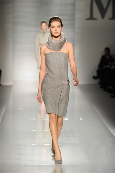 قد تكون Max Mara حافظت على بعض الأقمشة الكلاسيكيّة ولون الكاميل الكلاسيكيّ، ولكن تصاميها كانت عصريّة جدّاً، حتّى بعض الأقمشة التي قدّمتها مثل التي كانت مطبوعة بجلد البقرة. تنانير من الجلد بلون رماديّ، فساتين وتنانير «جاكارد» ولكن فيها بعض اللمعان، فساتين دون أكمام بأقمشة لمّاعة جديدة بألوان البيج مع الأبيض أو رماديّ مع أبيض. التصاميم أتت أيضاً مع «بكلة» عريضة مثل الحزام، على عنق المعاطف أو على الجنب.