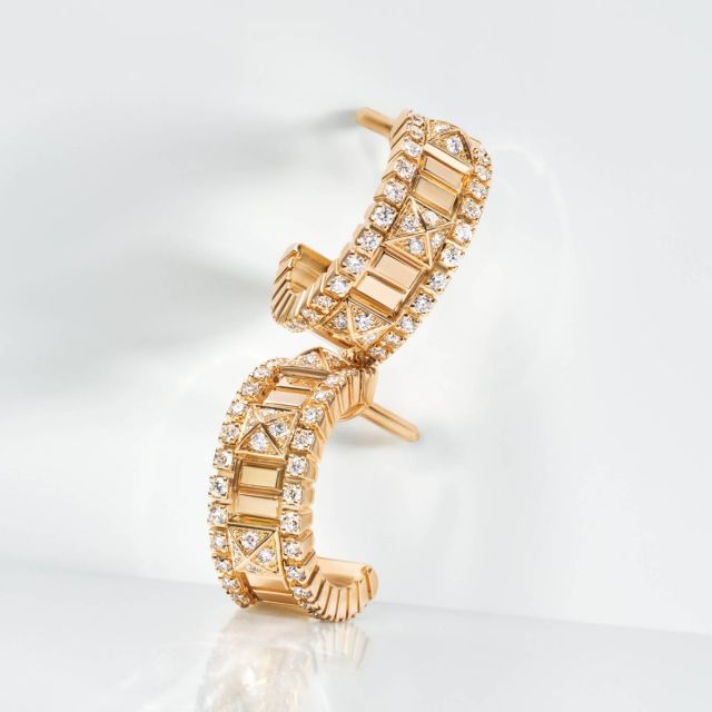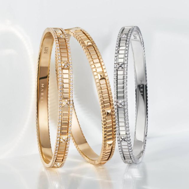 يبرز في قلب المجموعة القَصّ الهرمي للأحجار الكريمة، الذي يُعدّ توقيع "مارلي" الأيقوني ورمزاً ثابتاً لالتزام الماركة بالمهارة الحِرفية الاستثنائية. يُصنع هذا التصميم الهرمي من العقيق الأخضر والفيروز، أو الماس ذات القَصّة المخروطية، ليضفي على كل ابتكار طابعاً معبراً يجسّد روعة الإتقان الحرفي. وبفضل التلاعب المبدع بالألوان والضوء، يعزز صفان مزدوجان من أحجار الماس البرّاقة جاذبية كل قطعة فيخطف الأنظار.