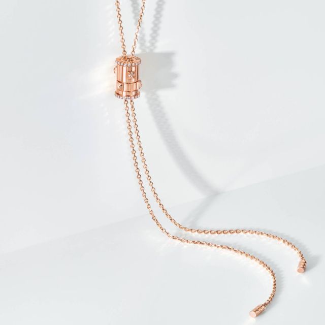 للمرة الأولى على الإطلاق، تُضاف القلادات والأقراط إلى مجموعة life وقد تم تصميم كل قطعة بدقة فائقة لتوفير أساليب غير محدودة للتعبير عن الذات. يتصدّر هذا التوسع عقد آسر مزوّد بحلية دوّارة، وهو مصنوع ببراعة من الماس المرصّع بالذهب الوردي عيار 18 قيراطاً. تضفي هذه القطعة الأنيقة لمسة من المرح على المجموعة، وتتناغم تماماً مع تشكيلة أساور وخواتم life التي تم إطلاقها لأول مرة عام 3202.