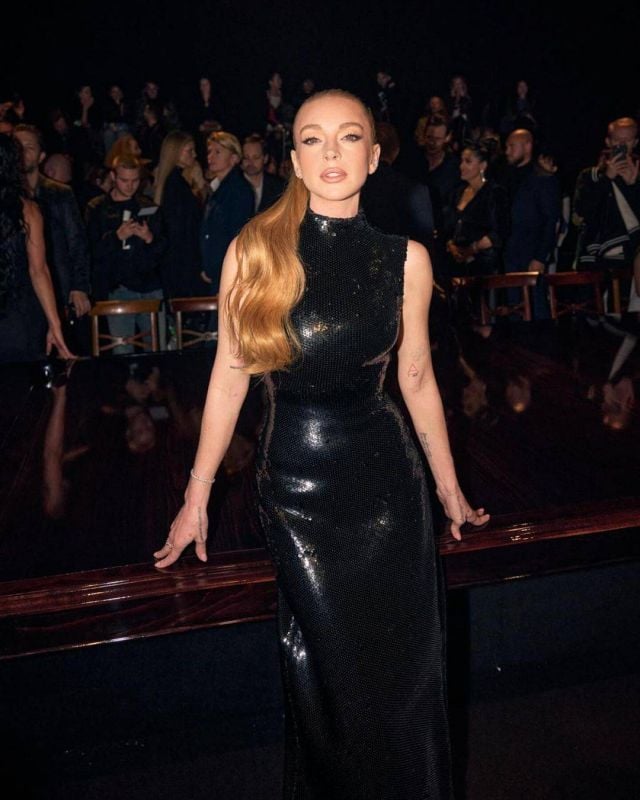 خلال أسبوع الموضة في باريس، تألقت الممثلة الشهيرة في عرض أزياء "بالنسياغا" Balenciaga، حيث ارتدت فستاناً أسود ضيقاً ومعطفاً جلدياً طويلاً متطابقاً. كان هذا الظهور بمثابة إعادة تعريف للأناقة والجرأة، حيث تألقت لوهان بإطلالة لم يسبق لها أن ظهرت فيها بهذه الروعة.