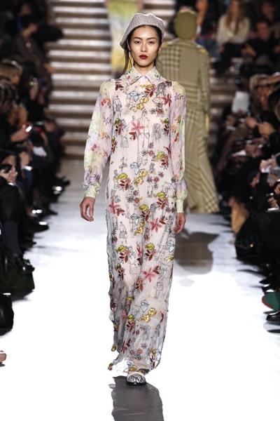 أعجبني في العرض الفرو الزهريّ والأصفر اللون، وفستان أبيض طويل مطبوع برسوم الفتيات والورود الملوّنة على القماش، وألوان الباستيل، من ليلكيّ وأخضر، وأصفر ومشمشيّ. الجوخ، الموهير، الصوف، التويد، الدانتيل المحبوك، الورود الملوّنة، نقوش Missoni التقليديّة، جلد الأفعى.. قبّعات ملوّنة من الصوف على الرأس، شراريب طويلة، وجزمات من الجلد. مجموعة تصوّر قصّة Missoni الخياليّة.