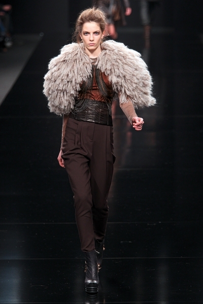 السراويل تطول وتصل إلى أعلى الخصر ولكن القمصان والسترات قصيرة. الفساتين قصيرة أيضاً بأقمشة معدنيّة، أو طويلة مفتوحة من الأمام أو مزمومة. في المجموعة سراويل ضيّقة وتنانير قصيرة من الفرو أو مزيّنة بالريش. والفرو رأيناه أيضاً على أكمام الفساتين وعلى الأكتاف.