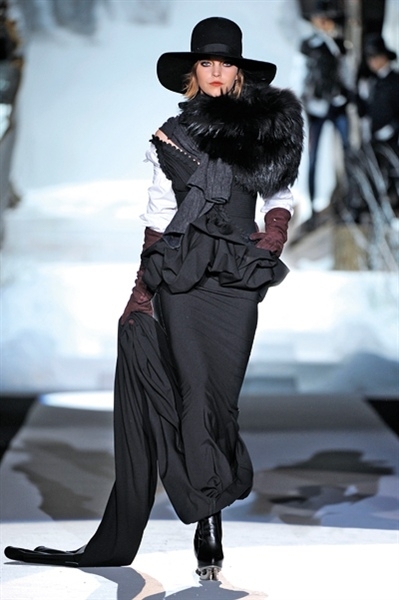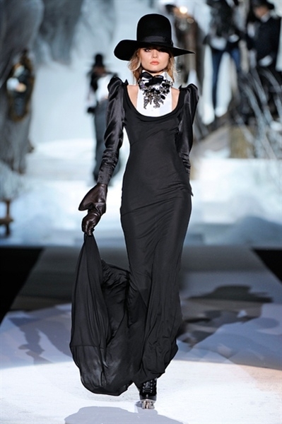 مجموعة 2 Dsquared مستوحاة هذا الشتاء من لقطة للممثّلة Nicole Kidman في فيلم Cold Mountain ... المرأة في المجموعة قويّة وصلبة، تقوم هي باتّخاذ القرارات بنفسها. العرض مسرحيّ مرح، كما عوّدنا المصمّمان «دين» و«دان» ... المجموعة عصريّة، فيها الكثير من الجينز طبعاً، ولكن ترتديه المرأة بطريقة أنيقة جدّاً. أعجبتني سترات وسراويل ضيّقة من الجلد الأسود. بعض السترات قصيرة، وبعضها باللون الأحمر، عليها الكشاكش. وهناك معاطف طويلة من الفرو. ومن الجلد الأسود أيضاً تنّورة طويلة تماشي موضة الموسم. القمصان باللون الأبيض رائعة أيضاً وكذلك سترة دون أكمام مع الحمّالات. وفستان أسود طويل مع ياقة بيضاء تحته. رأينا أيضاً الأحذية «الغريبة»، ومنها جزمة للتزلّج على الجليد أعتقد أنّها للعرض فقط. وكدت أنسى أن الموسيقى كانت رائعة أيضاً.