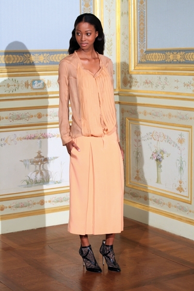 تصاميم ذكورية بسيطة اقتبست ياقة البزة الرجالية السوداء وأخرى أنثوية. هذا ما عكسه «الدرابيه» الحريري المنسجم مع التنانير الشاحبة المتألقة مع جزمة الدانتيل الأسود القصيرة. ورغم أن هذه المجموعة جاءت ذكورية وأنثوية مناصفة، فإن عنواناً جامعاً يمكن أن يطلق عليها، حرّة وغير مُحكمة.