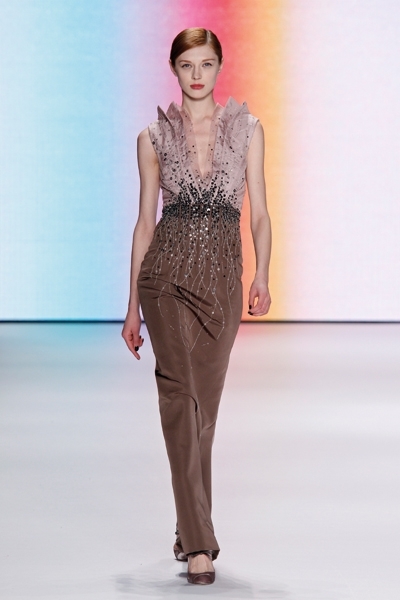 بل هي تصاميم كلاسيكيّة مع لمسة عصريّة وتفاصيل باهظة ومفرطة، لم لا؟!» .... فكارولينا تحبّ الثياب المصنوعة بعناية من أقمشة بنوعيّة ممتازة، وهي ملابس تعجب الرجال والنساء معاً. المجموعة التي تقدّمها Carolina Herrera هذا الشتاء مستوحاة من المرأة اليوم. فالمرأة التي سترتدي فساتينها الآن هي إمرأة أنيقة تريد أن تبدو في غاية الأنوثة.