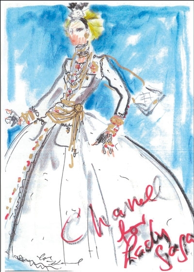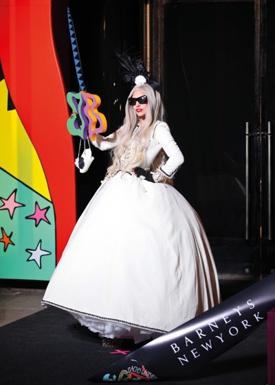 ارتدت لايدي غاغا فستاناً من التويد الأبيض صممه لها خصيصاً كارل لاغيرفيلد من دار شانيل Chanel وذلك خلال حضورها الاحتفال الذي جرى في جناحها الخاص في متجر بارنيز الشهير في نيويورك Barneys Gaga Workshop والذي يقام لمناسبة الأعياد في مدينة نيويورك.