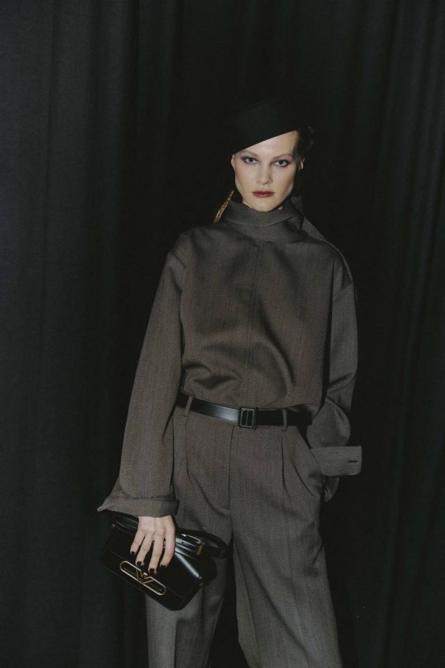 تترافق هذه المجموعة المذهلة مع أحذية مسطّحة، وحقائب إما كبيرة وواسعة أو صغيرة الحجم، ومجوهرات تضيف لمسات زخرفية خفيفة، بالإضافة إلى أزهار ليلية طويلة مُثبتة على طيّة صدر السترة.