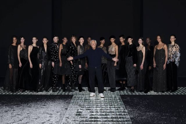إحساس لوني يُترجم إلى أشكال وحركات انسيابية، هو جوهر مجموعة Emporio Armani، التي تحتفي بسماء الليل المضيئة بنجومها وقمرها الساطع. تتميز هذه المجموعة بلوحة ألوان باردة ولكن حيوية، حيث يهيمن اللون الأسود مع وميض ظلال البنفسجي، وفوق البنفسجي، واليشم الأخضر، والرمادي، مما يعكس سحر سماء الشتاء عند الغروب.