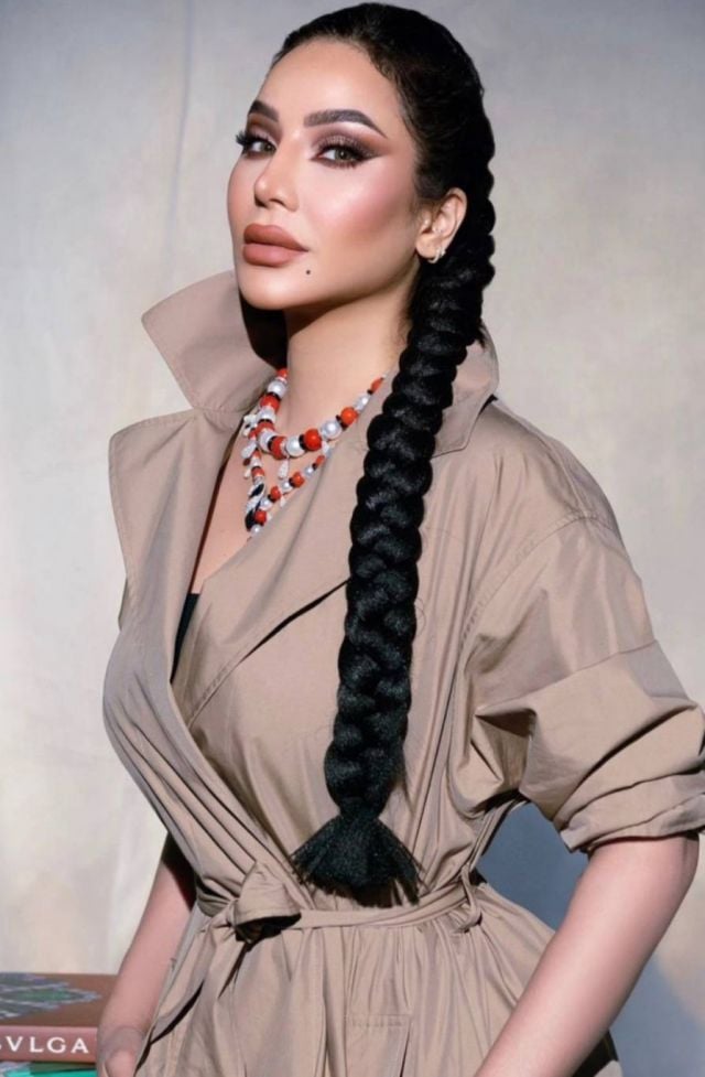 واختارت لجين لهذه المناسبة فستاناً أنيقاً باللون الأسود وجاء من قماش المخمل بتصميم ضيق ومجسم بالكامل يبرز رشاقتها مع أكمام طويلة مزينة بالأبيض عند أطراف الكمّ، وقصّة مكشوفة عند الصدر، ليتسع في النهاية بقصّة حورية البحر عند القدمين بطبقات من التول الأبيض من الداخل. وأكملت إطلالتها بماسك أسود يتماشى مع الأجواء، وتزينت مجوهرات ماسية أنيقة من بولغاري.