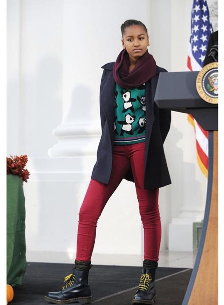 ساشا أوباما، تماماً مثل شقيقتها ووالدتها، تخطف قلوب المراهقين الأميركيين ببساطتها... وهي كلّما ارتدت قطعة ما، تنفد من السوق على الفور! ساشا أطلّت في أسبوع عيد الشكر مع شقيقتها ووالدها مرتديّة سروال جينز ضيّق باللون الأحمر، مع كنزة برسوم الباندا من Urban Outfitters (بسعر 69 دولار فقط)، وحذاء Dr. Martens الكلاسيكيّ (حوالي 130 دولار) الذي عاد ليصبح رائجاً بين المراهقين وحتّى النساء الشابّات.