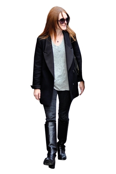 خرجت الممثلة الأميركية جوليان مور إلى الأسواق للتّنزه قليلاً، وقد إختارت أزياء مريحة ودافئة مناسبة لنهار نيويوركي غائم. خضعت إطلالتها الصباحية لمسْح أناقة شامل ودقيق، وكانت النتيجة : بساطة هوليوودية تتنقّل بجزمة فارسة شابة وسترة سيّدة أعمال على خطوة واحدة من العقد الخامس.